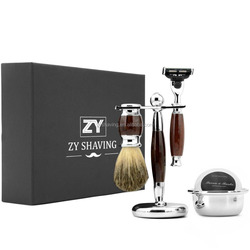ZYモダンラグジュアリーツインブレードウェットシェービングセット合成アナグマヘアブラシステンレス鋼シェービングスタンド男性用