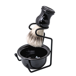 Promotionele Nylon Scheerborstel Voor Heren + Roestvrijstalen Scheerrek + Zwarte Zeepbak Voor Salongebruik