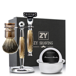 Zy hiện đại sang trọng Twin Blade ướt cạo Set với tổng hợp lửng tóc bàn chải thép không gỉ cạo đứng cho nam giới